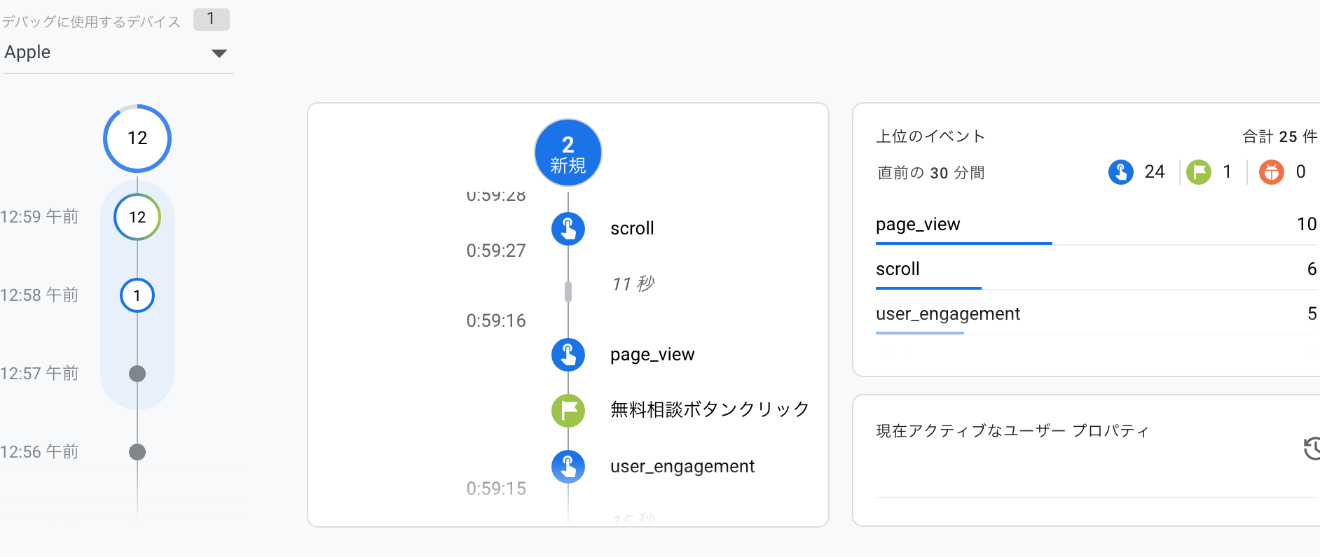 従来のGAでは、ページ移動が発生した時のみが経過時間として記録されていたが、GA4では各イベント(特定の経過時間を含む)毎に記録されるので、例えばそのページを1分以上見たユーザで絞ってみる等の行動が可能に