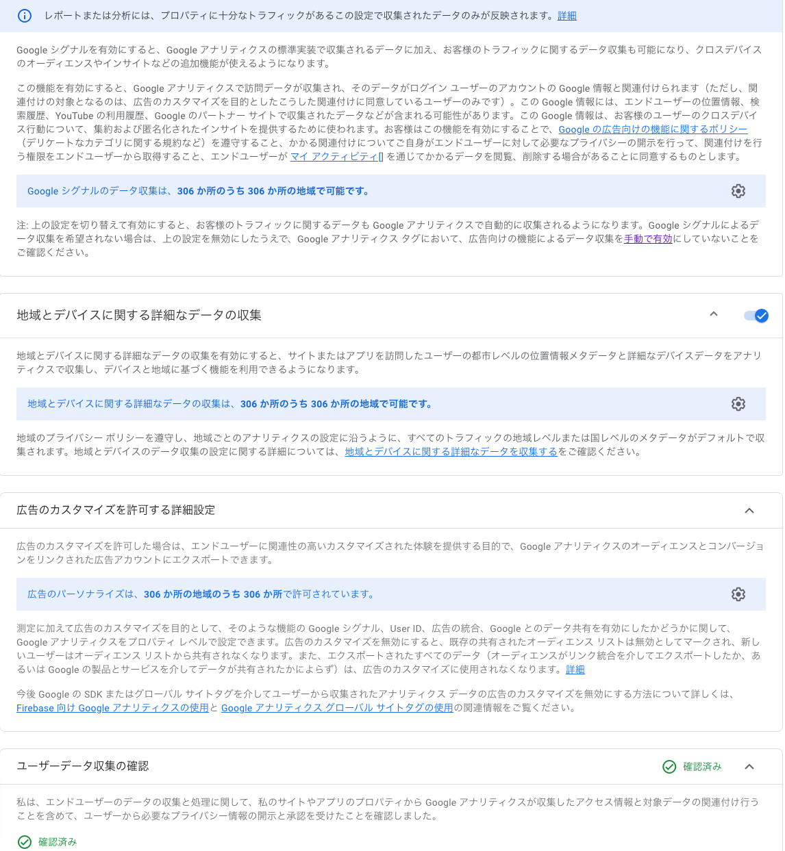Google シグナルのデータ収集 =>有効